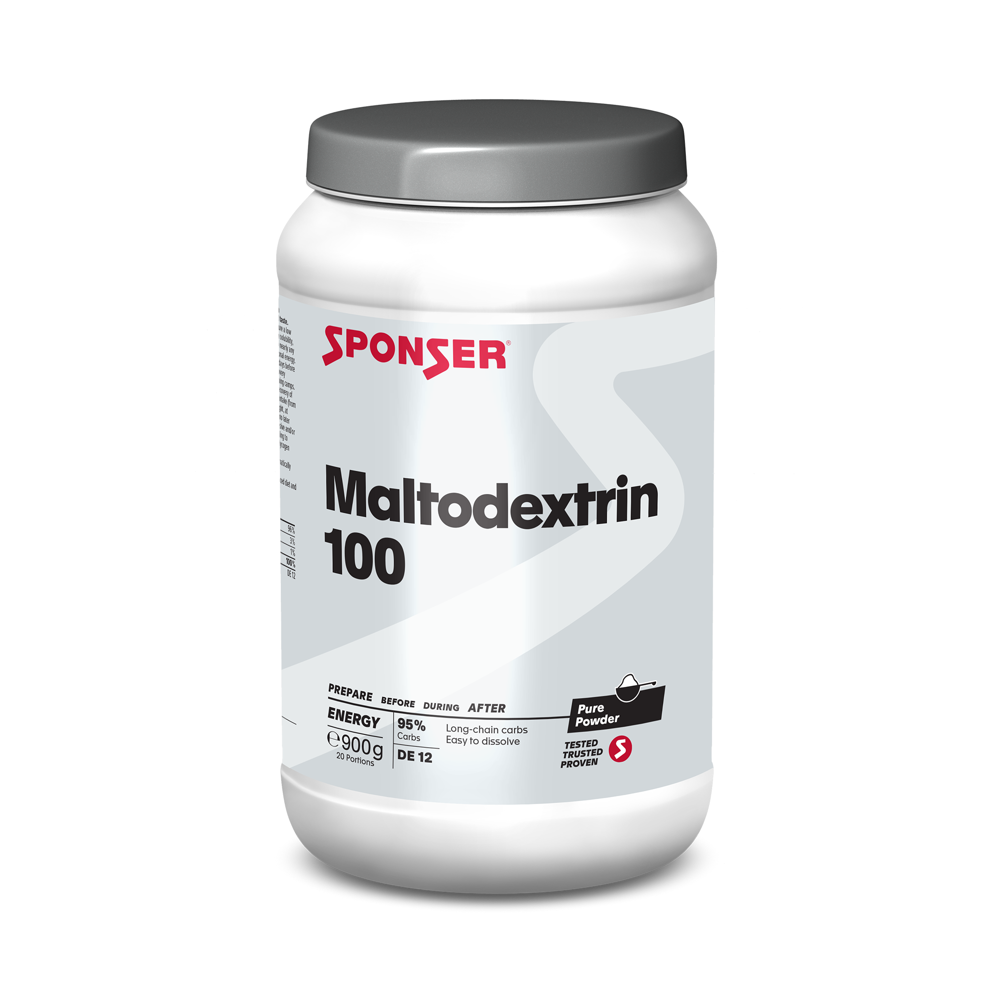 SPONSER Maltodextrin 100 delivers complex carbohydrates with a very low DE value of 12 (dextrose equivalent).