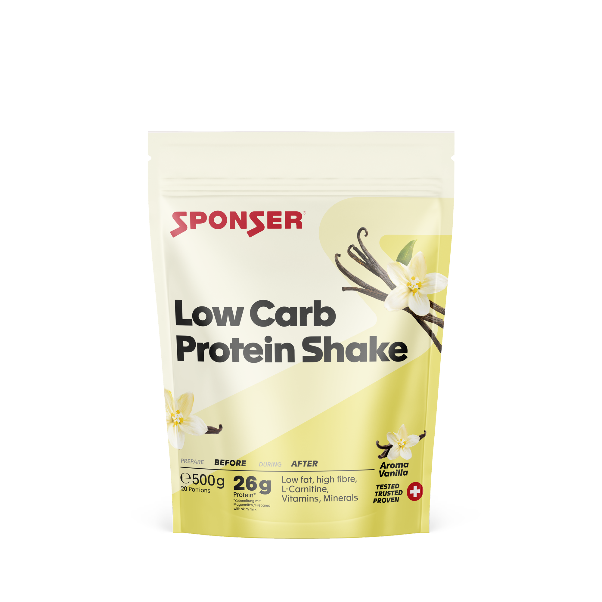 Le shake protéiné Low Carb de SPONSER® présente une valeur biologique élevée grâce à ses protéines de lait et d'œuf de haute qualité. Ces sources de protéines procurent une sensation de satiété durable et favorisent le maintien et la croissance de la masse musculaire. Ceci est particulièrement crucial en période de faible apport calorique pour contrer la perte musculaire. Les ingrédients fonctionnels L-carnitine et choline favorisent le métabolisme des graisses. Une portion contient 300 mg de L-carnitine issue de CarniPure® 100 % pur et 2,5 g de fibres alimentaires solubles, pour une sensation de satiété accrue. Ce produit est complété par des vitamines et des minéraux.