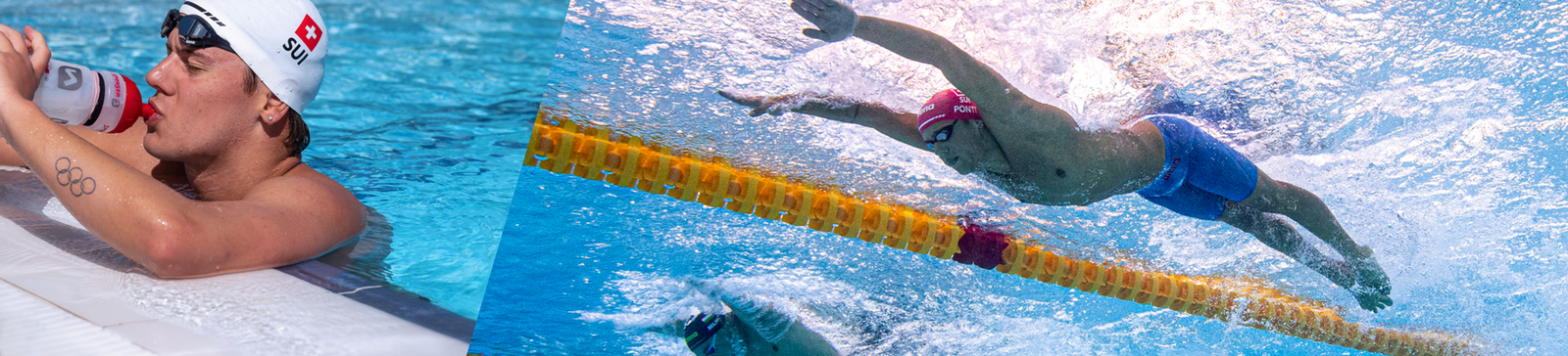 Achte vor dem Wettkampf auf leicht verdauliche, kohlenhydratreiche Kost und meide fettige und faserreiche Speisen! Die letzte Hauptmahlzeit erfolgt rund 3 h vor dem Start. Bei hohen Temperaturen in der Schwimmhalle und dem im Wasser nicht spürbaren Schweissverlust ist es besonders wichtig, dass du ausreichend hydriert bist und neben Flüssigkeit genügend Elektrolyte zuführst. Unsere Performance Optimizer helfen dir, deine Leistungs- und Regenerationsfähigkeit positiv zu beeinflussen.